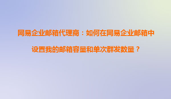 2025-11-01網(wǎng)易企業(yè)郵箱代理商:如何在網(wǎng)易企業(yè)郵箱中設(shè)置郵箱容量和單次群發(fā)數(shù)量? 作為企業(yè)日常辦公的重要工具,企業(yè)郵箱不僅關(guān)系到員工的溝通效率,也體現(xiàn)了企業(yè)的專業(yè)形象。網(wǎng)易企業(yè)郵箱以其穩(wěn)定性、安全性和豐富...