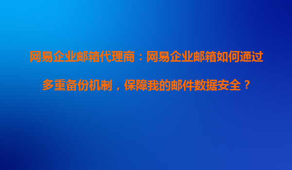 2025-11-01網(wǎng)易企業(yè)郵箱代理商:網(wǎng)易企業(yè)郵箱如何通過多重備份機(jī)制,保障我的郵件數(shù)據(jù)安全? 一、企業(yè)數(shù)據(jù)安全的重要性 在數(shù)字化時(shí)代,企業(yè)郵件作為重要的溝通工具和信息載體,承載著大量商業(yè)機(jī)密和客戶數(shù)據(jù)。一旦郵件數(shù)據(jù)丟...