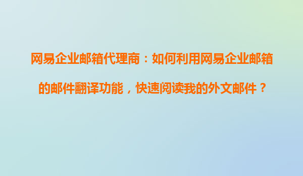 2025-10-31網(wǎng)易企業(yè)郵箱代理商指南:如何利用郵件翻譯功能快速閱讀外文郵件 一、網(wǎng)易企業(yè)郵箱的外文郵件翻譯功能簡介 網(wǎng)易企業(yè)郵箱作為國內(nèi)領(lǐng)先的企業(yè)級(jí)郵箱服務(wù),不僅提供了穩(wěn)定高效的郵件收發(fā)服務(wù),還集成...