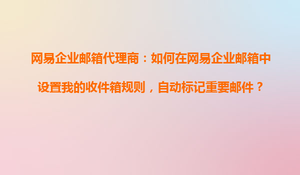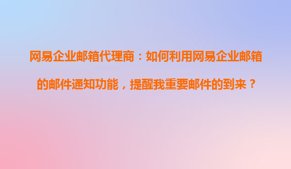 2025-10-31網(wǎng)易企業(yè)郵箱代理商指南:高效利用郵件通知功能,實(shí)時(shí)提醒重要郵件 一、網(wǎng)易企業(yè)郵箱郵件通知功能的核心價(jià)值 在快節(jié)奏的商務(wù)溝通中,重要郵件的實(shí)時(shí)接收直接影響企業(yè)運(yùn)營效率。網(wǎng)易企業(yè)郵箱提供的郵件...