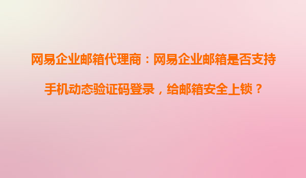 4008-020-360 網(wǎng)易企業(yè)郵箱支持手機(jī)動(dòng)態(tài)驗(yàn)證碼登錄,為企業(yè)信息安全加鎖 手機(jī)動(dòng)態(tài)驗(yàn)證碼登錄功能簡介 網(wǎng)易企業(yè)郵箱作為國內(nèi)領(lǐng)先的企業(yè)郵箱服務(wù)提供商,始終將用戶信息安全放在首位。其提供的手機(jī)動(dòng)態(tài)驗(yàn)證碼登錄功能,為企...