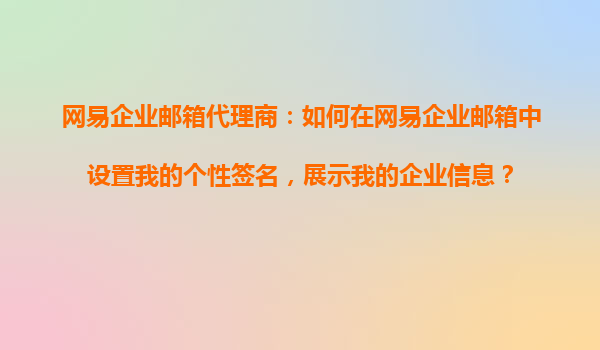 2025-10-30網(wǎng)易企業(yè)郵箱代理商:如何在網(wǎng)易企業(yè)郵箱中設(shè)置我的個(gè)性簽名,展示我的企業(yè)信息? 一、網(wǎng)易企業(yè)郵箱的優(yōu)勢(shì) 作為國(guó)內(nèi)領(lǐng)先的企業(yè)郵箱服務(wù)提供商,網(wǎng)易企業(yè)郵箱憑借其穩(wěn)定、安全、高效的特性,贏得了眾多企業(yè)的...