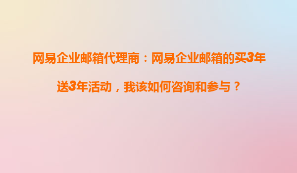 2025-10-30網(wǎng)易企業(yè)郵箱代理商:如何咨詢和參與"買3年送3年"活動(dòng)? 一、活動(dòng)背景:網(wǎng)易企業(yè)郵箱的核心價(jià)值 網(wǎng)易企業(yè)郵箱作為國(guó)內(nèi)領(lǐng)先的企業(yè)級(jí)郵件服務(wù),憑借以下優(yōu)勢(shì)成為眾多企業(yè)的首選: 安全穩(wěn)定:采...