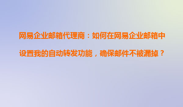 2025-10-30網(wǎng)易企業(yè)郵箱代理商:如何在網(wǎng)易企業(yè)郵箱中設(shè)置自動(dòng)轉(zhuǎn)發(fā)功能,確保郵件不被漏掉? 一、網(wǎng)易企業(yè)郵箱的優(yōu)勢(shì) 網(wǎng)易企業(yè)郵箱作為國(guó)內(nèi)領(lǐng)先的企業(yè)郵件服務(wù)提供商,具備以下核心優(yōu)勢(shì): 高安全性...