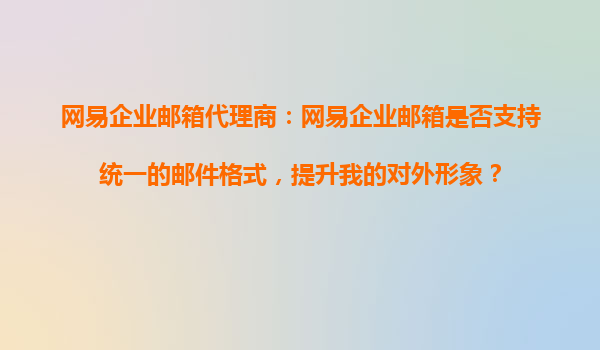 2025-10-31網(wǎng)易企業(yè)郵箱代理商:網(wǎng)易企業(yè)郵箱是否支持統(tǒng)一的郵件格式,提升我的對(duì)外形象? 一、網(wǎng)易企業(yè)郵箱的優(yōu)勢(shì):專業(yè)形象從細(xì)節(jié)開(kāi)始 在商業(yè)溝通中,郵件的專業(yè)性和規(guī)范性直接影響客戶對(duì)企...