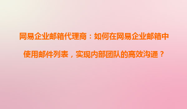 2025-10-25網(wǎng)易企業(yè)郵箱代理商:如何在網(wǎng)易企業(yè)郵箱中使用郵件列表,實(shí)現(xiàn)內(nèi)部團(tuán)隊(duì)的高效溝通? 一、網(wǎng)易企業(yè)郵箱的核心優(yōu)勢(shì) 網(wǎng)易企業(yè)郵箱作為國(guó)內(nèi)領(lǐng)先的企業(yè)級(jí)郵件服務(wù)解決方案,憑借以下優(yōu)勢(shì)成為眾多企業(yè)高效溝通的...