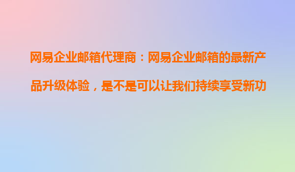 2025-10-26網(wǎng)易企業(yè)郵箱持續(xù)升級(jí),助力企業(yè)高效溝通 作為國(guó)內(nèi)領(lǐng)先的企業(yè)郵箱服務(wù)商,網(wǎng)易企業(yè)郵箱始終致力于通過(guò)技術(shù)迭代和功能優(yōu)化,為企業(yè)用戶提供更安全、穩(wěn)定、高效的郵件服務(wù)。其代理商體系也確保用戶能...