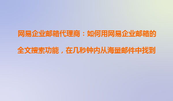 2025-10-25網(wǎng)易企業(yè)郵箱代理商指南:如何用全文搜索功能快速定位海量郵件信息? 一、網(wǎng)易企業(yè)郵箱的全文搜索功能簡(jiǎn)介 網(wǎng)易企業(yè)郵箱的全文搜索功能是一項(xiàng)強(qiáng)大的工具,能夠幫助用戶在幾秒鐘內(nèi)從海量郵件中精準(zhǔn)...