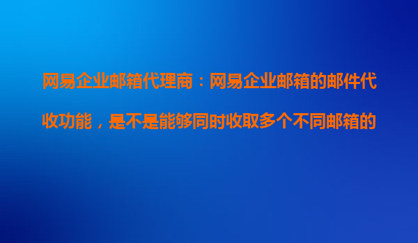 2025-10-26網(wǎng)易企業(yè)郵箱郵件代收功能:高效管理多郵箱的利器 一、什么是郵件代收功能? 網(wǎng)易企業(yè)郵箱的郵件代收功能允許用戶通過(guò)一個(gè)主郵箱賬號(hào),集中收取和管理其他多個(gè)郵箱的信件。無(wú)論是個(gè)人郵箱(如QQ、Gmail)還...