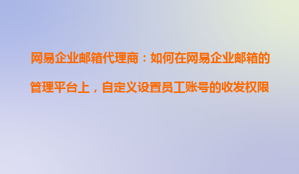 2025-10-26網(wǎng)易企業(yè)郵箱代理商指南:靈活配置員工賬號(hào)收發(fā)權(quán)限 一、網(wǎng)易企業(yè)郵箱的權(quán)限管理優(yōu)勢(shì) 網(wǎng)易企業(yè)郵箱作為國(guó)內(nèi)領(lǐng)先的企業(yè)通信解決方案,其管理平臺(tái)提供了高度靈活的權(quán)限配置功能。通過(guò)精細(xì)化的收發(fā)權(quán)限設(shè)置,...