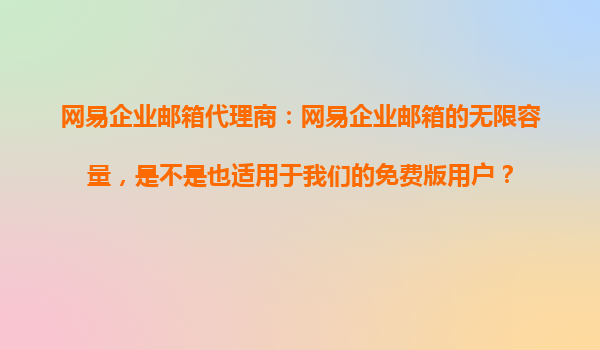 2025-10-26網(wǎng)易企業(yè)郵箱代理商:網(wǎng)易企業(yè)郵箱的無(wú)限容量,是不是也適用于我們的免費(fèi)版用戶? 網(wǎng)易企業(yè)郵箱的優(yōu)勢(shì) 網(wǎng)易企業(yè)郵箱作為國(guó)內(nèi)領(lǐng)先的企業(yè)郵箱服務(wù)提供商,憑借其穩(wěn)定、安全、高效的特點(diǎn),贏得了眾多企業(yè)...