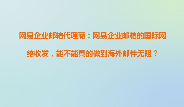 4008-020-360 網(wǎng)易企業(yè)郵箱代理商:網(wǎng)易企業(yè)郵箱的國際網(wǎng)絡(luò)收發(fā),能否真正做到海外郵件無阻? 引言 隨著全球化的發(fā)展,企業(yè)間的國際交流日益頻繁,郵件作為最常用的溝通工具之一,其穩(wěn)定性和可靠性對企業(yè)至關(guān)重要。許多企...