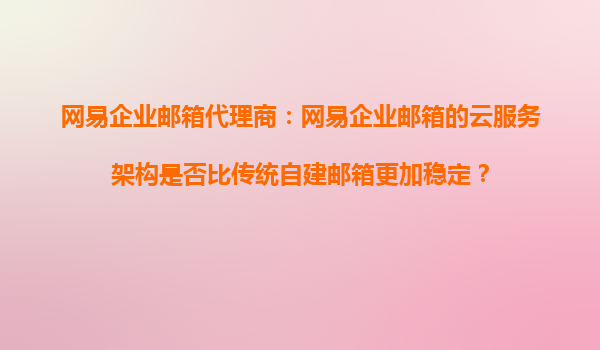 2025-10-21網(wǎng)易企業(yè)郵箱代理商:網(wǎng)易企業(yè)郵箱的云服務(wù)架構(gòu)是否比傳統(tǒng)自建郵箱更加穩(wěn)定? 引言 在數(shù)字化辦公時代,企業(yè)郵箱作為重要的通信工具,其穩(wěn)定性直接影響企業(yè)運營效率。傳統(tǒng)自建郵箱曾是企...