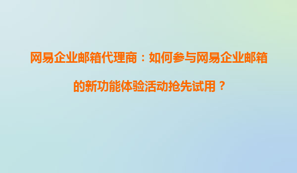 2025-10-21網(wǎng)易企業(yè)郵箱代理商如何參與新功能體驗活動 作為網(wǎng)易企業(yè)郵箱的代理商,您不僅可以享受到穩(wěn)定的產(chǎn)品支持,還能在第一時間體驗最新功能。網(wǎng)易企業(yè)郵箱會定期推出新功能體驗活動,代理商們可以通過官方渠道報名參與...