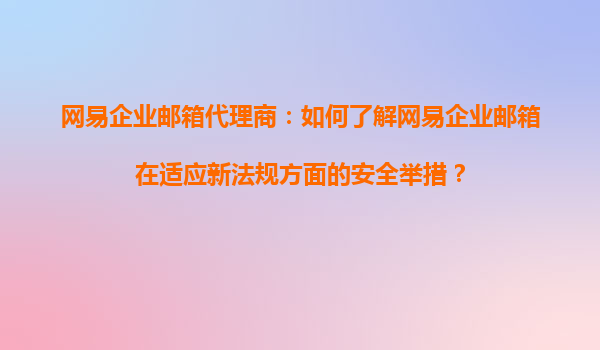 2025-10-21網(wǎng)易企業(yè)郵箱代理商:如何了解網(wǎng)易企業(yè)郵箱在適應(yīng)新法規(guī)方面的安全舉措? 引言:企業(yè)郵箱安全與合規(guī)的重要性 隨著數(shù)據(jù)安全法規(guī)的不斷完善(如《個人信息保護法》《數(shù)據(jù)...