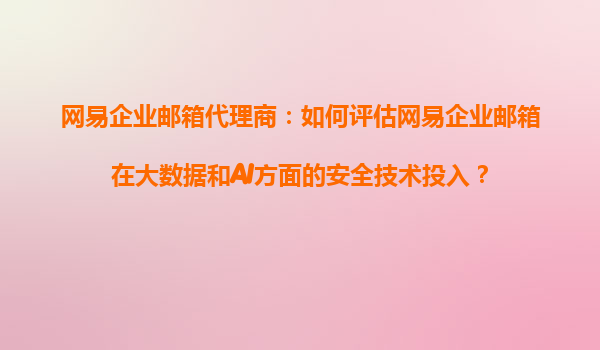 2025-10-21網(wǎng)易企業(yè)郵箱代理商:如何評估網(wǎng)易企業(yè)郵箱在大數(shù)據(jù)和AI方面的安全技術(shù)投入? 一、網(wǎng)易企業(yè)郵箱的技術(shù)背景與行業(yè)地位 網(wǎng)易企業(yè)郵箱作為國內(nèi)領(lǐng)先的企業(yè)級郵件服務(wù)提供商...