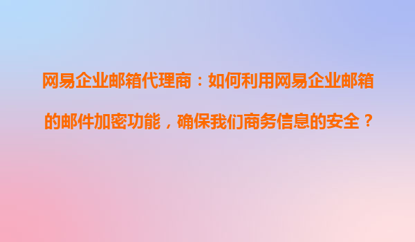 2025-10-22網(wǎng)易企業(yè)郵箱代理商:如何利用網(wǎng)易企業(yè)郵箱的郵件加密功能,確保商務(wù)信息的安全? 在當今數(shù)字化時代,商務(wù)郵件的安全性越來越受到企業(yè)的關(guān)注。網(wǎng)易企業(yè)郵箱作為國內(nèi)領(lǐng)先的企業(yè)郵箱服務(wù)提供商,憑借其...