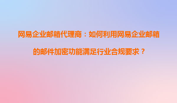 2025-10-22網(wǎng)易企業(yè)郵箱代理商:如何利用網(wǎng)易企業(yè)郵箱的郵件加密功能滿足行業(yè)合規(guī)要求 一、行業(yè)合規(guī)對郵件安全的核心要求 隨著《網(wǎng)絡(luò)安全法》《數(shù)據(jù)安全法》等法規(guī)的落地,金融、醫(yī)療、教育等行業(yè)對郵件通信提出...