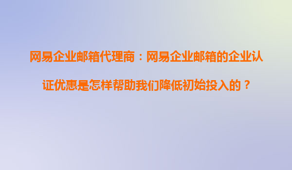 2025-10-18網(wǎng)易企業(yè)郵箱代理商:網(wǎng)易企業(yè)郵箱的企業(yè)認證優(yōu)惠是怎樣幫助我們降低初始投入的? 在當今數(shù)字化商業(yè)環(huán)境中,企業(yè)郵箱不僅是溝通工具,更是品牌形象和商業(yè)信任的體現(xiàn)。對于初創(chuàng)企業(yè)或中小型企業(yè)而言,選擇一...