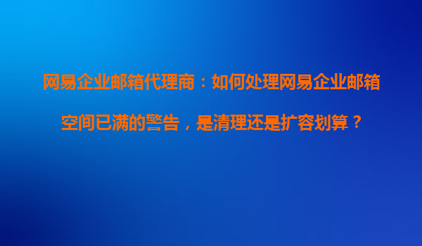 2025-10-19網(wǎng)易企業(yè)郵箱代理商:如何處理網(wǎng)易企業(yè)郵箱空間已滿的警告,是清理還是擴容劃算? 在數(shù)字化辦公時代,企業(yè)郵箱已成為高效溝通的重要工具。網(wǎng)易企業(yè)郵箱憑借其穩(wěn)定的性能、豐富的功能和強大的安全保障,成為...