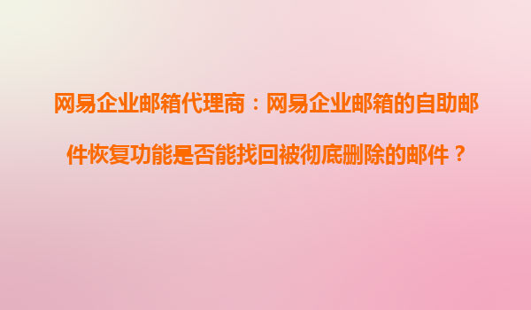 2025-10-18網(wǎng)易企業(yè)郵箱代理商:網(wǎng)易企業(yè)郵箱的自助郵件恢復(fù)功能是否能找回被徹底刪除的郵件? 在數(shù)字化辦公時代,企業(yè)郵箱作為日常溝通的核心工具,其數(shù)據(jù)安全與郵件管理能力備受關(guān)注。網(wǎng)易企業(yè)郵箱憑借強大的...