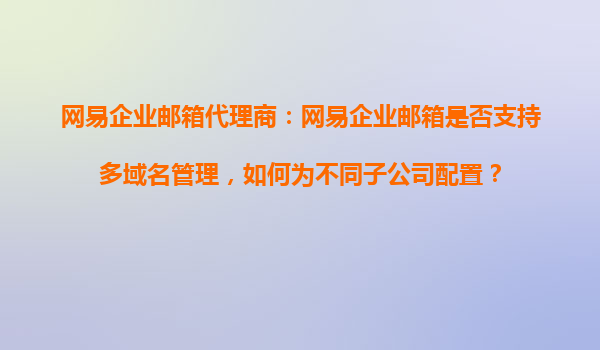 2025-10-18網(wǎng)易企業(yè)郵箱代理商解析:多域名管理與子公司配置指南 一、網(wǎng)易企業(yè)郵箱的多域名管理能力 作為國內(nèi)領(lǐng)先的企業(yè)級郵箱服務(wù)商,網(wǎng)易企業(yè)郵箱支持靈活的多域名綁定與管理功能,滿足集團型企業(yè)、跨國公司和擁有...