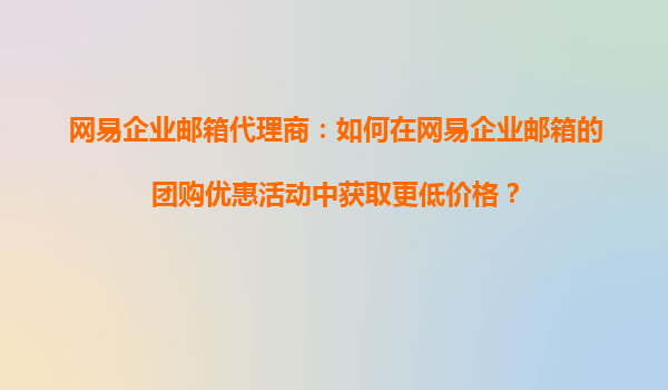 2025-10-18網(wǎng)易企業(yè)郵箱代理商:如何在團購優(yōu)惠活動中獲取更低價格 網(wǎng)易企業(yè)郵箱作為國內(nèi)領(lǐng)先的企業(yè)郵箱服務(wù)提供商,憑借其穩(wěn)定、安全、高效的特點,深受企業(yè)用戶的青睞。對于有意向通過代理商購買網(wǎng)易企業(yè)郵箱的企業(yè)來說,如...