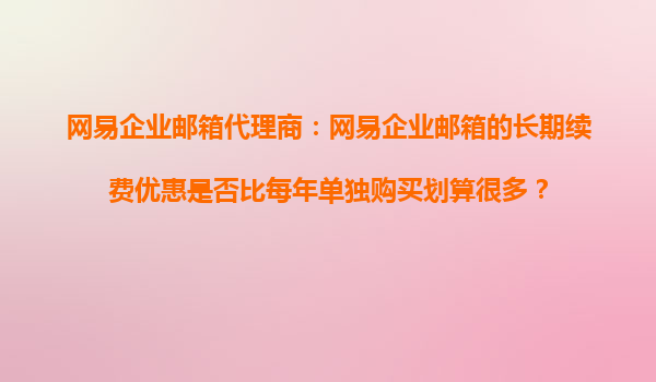 4008-020-360 網(wǎng)易企業(yè)郵箱代理商:長期續(xù)費優(yōu)惠是否比每年單獨購買劃算很多? 一、網(wǎng)易企業(yè)郵箱的市場定位與核心優(yōu)勢 網(wǎng)易企業(yè)郵箱作為國內(nèi)領(lǐng)先的企業(yè)級郵件服務(wù)商,憑借其...