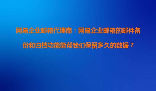2025-10-17網(wǎng)易企業(yè)郵箱代理商解析:郵件備份和歸檔功能的數(shù)據(jù)保留時長與價值 一、郵件備份與歸檔的重要性 在數(shù)字化辦公時代,企業(yè)郵件不僅是溝通工具,更是重要的法律憑證和業(yè)務(wù)記錄。數(shù)據(jù)丟失或管理不當可...