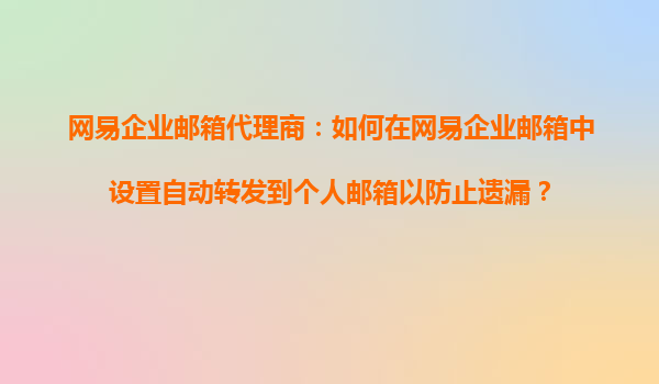 2025-10-17網(wǎng)易企業(yè)郵箱代理商:如何在網(wǎng)易企業(yè)郵箱中設(shè)置自動轉(zhuǎn)發(fā)到個人郵箱以防止遺漏? 網(wǎng)易企業(yè)郵箱的優(yōu)勢 網(wǎng)易企業(yè)郵箱作為國內(nèi)領(lǐng)先的企業(yè)郵箱服務(wù)提供商,憑借其穩(wěn)定、安全、高效的特點,深...