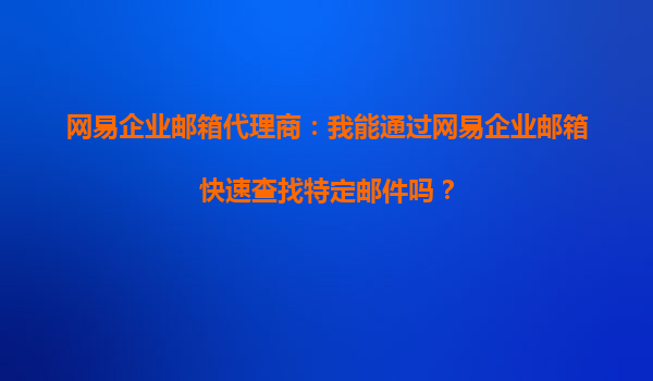 2025-10-05網(wǎng)易企業(yè)郵箱代理商:我能通過(guò)網(wǎng)易企業(yè)郵箱提高郵件檢索速度嗎? 在當(dāng)今快節(jié)奏的商業(yè)環(huán)境中,高效的郵件檢索速度對(duì)于企業(yè)運(yùn)營(yíng)至關(guān)重要。作為網(wǎng)易企業(yè)郵箱的代理商,我們經(jīng)常被客戶詢問(wèn):“網(wǎng)易企業(yè)郵箱能否幫助...