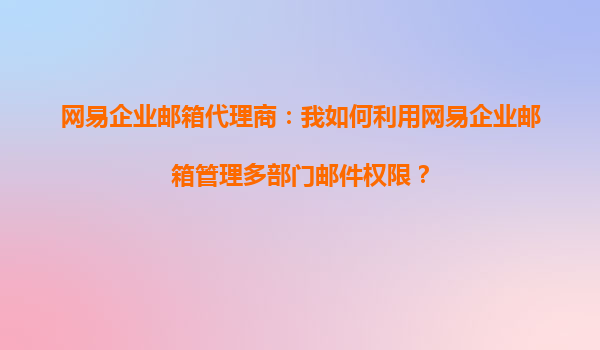 2025-10-05網(wǎng)易企業(yè)郵箱代理商:如何利用網(wǎng)易企業(yè)郵箱管理多部門郵件權(quán)限 在當(dāng)今數(shù)字化辦公環(huán)境中,企業(yè)郵箱不僅是溝通工具,更是信息管理的重要平臺(tái)。作為網(wǎng)易企業(yè)郵箱代理商,我們深知高效管理多部門郵件權(quán)限對(duì)企業(yè)運(yùn)營(yíng)的...