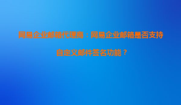 2025-10-04網(wǎng)易企業(yè)郵箱代理商:網(wǎng)易企業(yè)郵箱是否支持自定義郵件簽名功能? 一、網(wǎng)易企業(yè)郵箱支持強(qiáng)大的自定義郵件簽名功能 作為國(guó)內(nèi)領(lǐng)先的企業(yè)郵箱服務(wù)提供商,網(wǎng)易企業(yè)郵箱不僅支持自定義郵件簽名功能,還提供了豐...