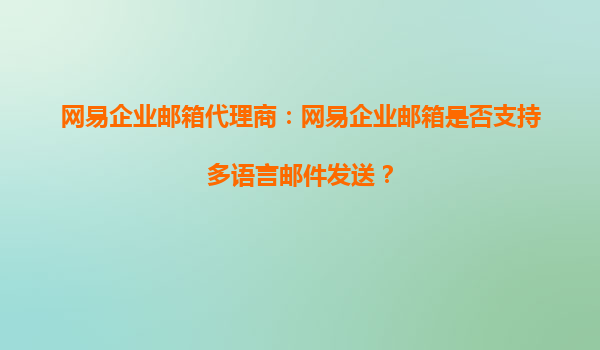 2025-10-02網(wǎng)易企業(yè)郵箱代理商:網(wǎng)易企業(yè)郵箱是否支持多語言郵件發(fā)送? 在全球化商業(yè)環(huán)境中,企業(yè)郵件的多語言支持已成為跨國溝通的剛需。作為國內(nèi)領先的企業(yè)郵箱服務商,網(wǎng)易企業(yè)郵箱憑借其強大的技術實力和國際化布...