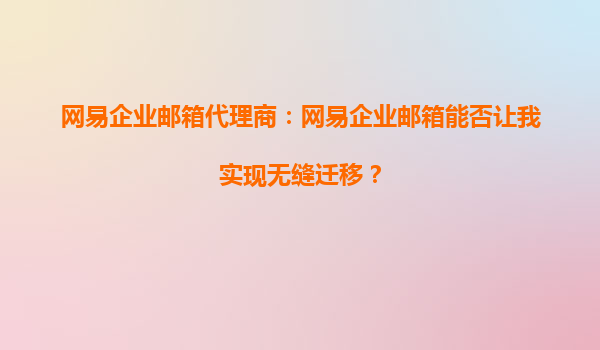 2025-09-30網(wǎng)易企業(yè)郵箱代理商:網(wǎng)易企業(yè)郵箱能否讓我實(shí)現(xiàn)無縫遷移? 在當(dāng)今數(shù)字化辦公環(huán)境中,企業(yè)郵箱作為內(nèi)外溝通的核心工具,其穩(wěn)定性、安全性和易用性直接影響企業(yè)運(yùn)營效率。許多企業(yè)在選擇或更換郵箱服務(wù)時(shí),最關(guān)心...