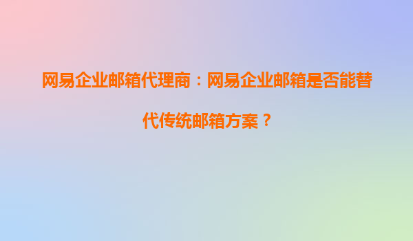 2025-09-28網(wǎng)易企業(yè)郵箱:能否替代傳統(tǒng)企業(yè)郵箱方案? 一、傳統(tǒng)企業(yè)郵箱的痛點(diǎn) 在過去的辦公環(huán)境中,許多企業(yè)依賴傳統(tǒng)郵箱解決方案(如自建郵件服務(wù)器或基礎(chǔ)付費(fèi)郵箱)。...