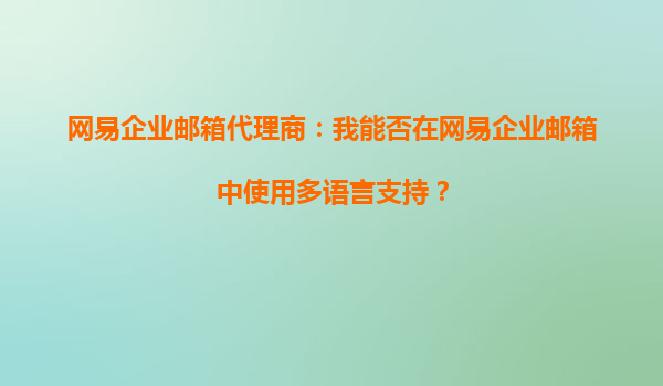 2025-09-28網(wǎng)易企業(yè)郵箱代理商:我能否在網(wǎng)易企業(yè)郵箱中使用多語言支持? 一、網(wǎng)易企業(yè)郵箱的多語言支持概述 隨著全球化進(jìn)程的加速,越來越多的企業(yè)需要與海外客戶、合作伙伴進(jìn)行業(yè)務(wù)往來。網(wǎng)易企業(yè)郵箱作為國內(nèi)領(lǐng)先的企...