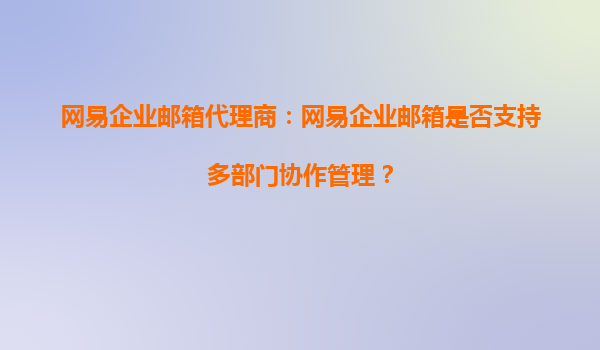 4008-020-360 網(wǎng)易企業(yè)郵箱代理商:網(wǎng)易企業(yè)郵箱是否支持多部門協(xié)作管理? 一、網(wǎng)易企業(yè)郵箱的多部門協(xié)作管理功能 網(wǎng)易企業(yè)郵箱作為國內(nèi)領(lǐng)先的企業(yè)級(jí)郵箱服務(wù)提供商,其強(qiáng)大...
