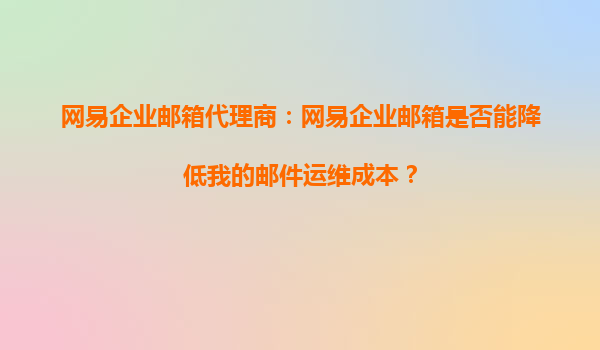 2025-09-26網易企業(yè)郵箱代理商:網易企業(yè)郵箱是否能降低我的郵件運維成本? 一、企業(yè)郵件運維成本的構成與痛點 企業(yè)郵件系統(tǒng)的運維成本通常包含硬件投入、軟件許可、人員維護、安全防護及故障處理等。傳統(tǒng)自建郵件服...