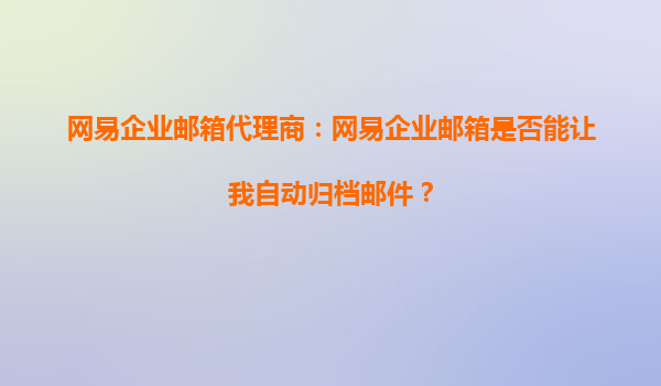 2025-09-27網易企業(yè)郵箱代理商:網易企業(yè)郵箱是否能讓我自動歸檔郵件? 一、網易企業(yè)郵箱的自動歸檔功能解析 網易企業(yè)郵箱作為國內領先的企業(yè)級郵箱服務提供商,其功能豐富且實用,尤其在郵件管理方面表現(xiàn)突出。...