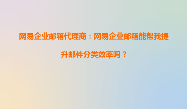 2025-09-26網易企業(yè)郵箱代理商:網易企業(yè)郵箱能幫我提升郵件分類效率嗎? 在當今快節(jié)奏的商業(yè)環(huán)境中,高效的郵件管理是企業(yè)運營中不可或缺的一部分。網易企業(yè)郵箱作為國內領先的企業(yè)郵箱服務提供商,憑借其強大的功能...