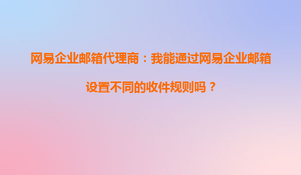 2025-09-22網(wǎng)易企業(yè)郵箱代理商:我能通過網(wǎng)易企業(yè)郵箱設(shè)置不同的收件規(guī)則嗎? 在當(dāng)今快速發(fā)展的商業(yè)環(huán)境中,企業(yè)郵箱已成為企業(yè)日常溝通不可或缺的工具。作為國內(nèi)領(lǐng)先的企業(yè)郵箱服務(wù)提供商,網(wǎng)易企業(yè)郵箱憑借其強(qiáng)大的...