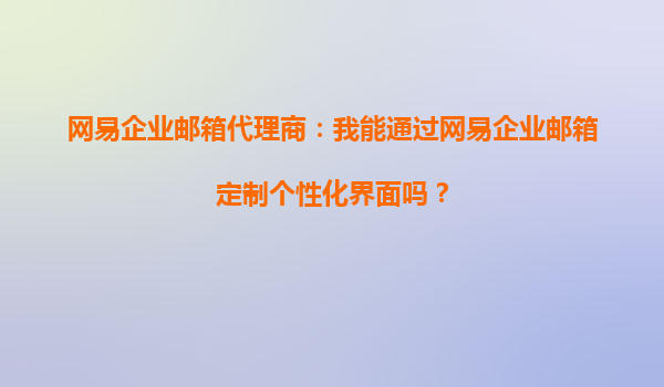 2025-09-23網(wǎng)易企業(yè)郵箱代理商:定制個性化界面,提升企業(yè)品牌形象 引言:企業(yè)郵箱的重要性 在當(dāng)今數(shù)字化辦公時代,企業(yè)郵箱不僅是溝通的工具,更是企業(yè)形象和專業(yè)度的體現(xiàn)。網(wǎng)易企業(yè)郵箱憑借其穩(wěn)定性和豐富的功能,成...