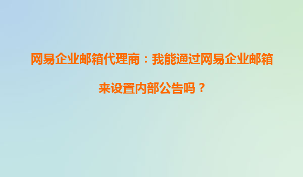 4008-020-360 網(wǎng)易企業(yè)郵箱代理商:我能通過網(wǎng)易企業(yè)郵箱來設(shè)置內(nèi)部公告嗎? 隨著企業(yè)數(shù)字化轉(zhuǎn)型的加速,高效便捷的內(nèi)部溝通工具成為企業(yè)管理的重要需求。作為國內(nèi)領(lǐng)先的企業(yè)郵箱服務(wù)商,網(wǎng)易企業(yè)郵箱憑借其強(qiáng)大的功能和穩(wěn)定的...