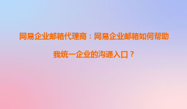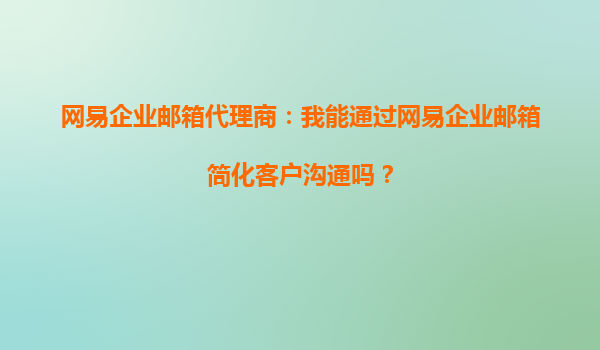 2025-09-20網(wǎng)易企業(yè)郵箱代理商:我能通過網(wǎng)易企業(yè)郵箱簡化客戶溝通嗎? 一、網(wǎng)易企業(yè)郵箱如何助力代理商簡化客戶溝通 作為網(wǎng)易企業(yè)郵箱的代理商,您完全可以通過其強(qiáng)大的功能體系顯著簡化客戶溝通流程。網(wǎng)易企業(yè)郵箱...