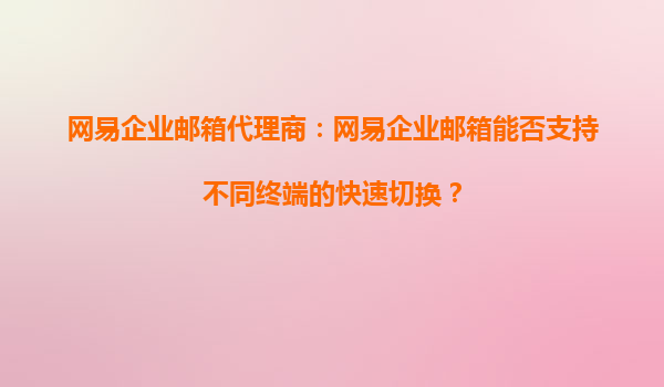 2025-09-21網(wǎng)易企業(yè)郵箱代理商:網(wǎng)易企業(yè)郵箱能否支持不同終端的快速切換? 在當(dāng)今快節(jié)奏的職場環(huán)境中,企業(yè)郵箱作為日常辦公的核心工具,其跨終端協(xié)同能力和響應(yīng)速度直接影響團(tuán)隊(duì)效率。作為國內(nèi)領(lǐng)先的企業(yè)郵箱服務(wù)商...