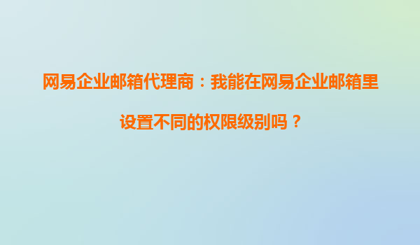 2025-09-20網(wǎng)易企業(yè)郵箱代理商:我能在網(wǎng)易企業(yè)郵箱里設(shè)置不同的權(quán)限級別嗎? 在當(dāng)今數(shù)字化辦公環(huán)境中,企業(yè)郵箱不僅是溝通工具,更是信息安全與管理效率的核心載體。作為國內(nèi)領(lǐng)先的企業(yè)郵箱服務(wù)商,網(wǎng)易企業(yè)郵箱憑借...