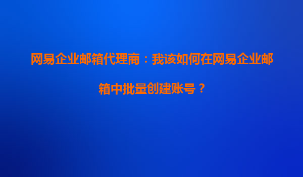 2025-09-18網(wǎng)易企業(yè)郵箱代理商分享:如何在網(wǎng)易企業(yè)郵箱中批量創(chuàng)建賬號 一、網(wǎng)易企業(yè)郵箱及其代理商的優(yōu)勢 網(wǎng)易企業(yè)郵箱作為國內(nèi)領(lǐng)先的企業(yè)級電子郵件服務(wù)商,憑借穩(wěn)定安...
