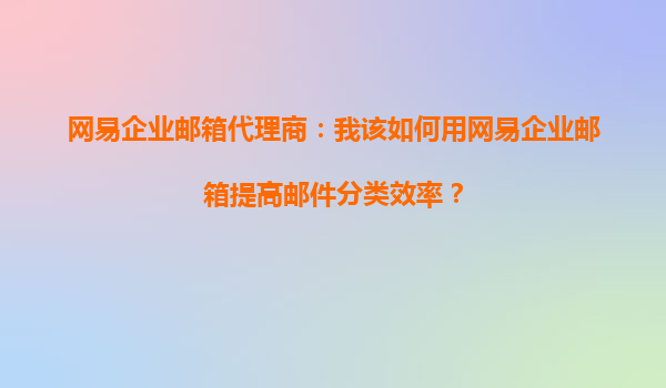 4008-020-360 網(wǎng)易企業(yè)郵箱代理商:我該如何用網(wǎng)易企業(yè)郵箱提高郵件分類效率? 一、網(wǎng)易企業(yè)郵箱的優(yōu)勢 作為一名網(wǎng)易企業(yè)郵箱代理商,我深知企業(yè)郵箱在日常工作中的重要性。尤其是在郵件分類效率方面,網(wǎng)易企業(yè)郵箱...