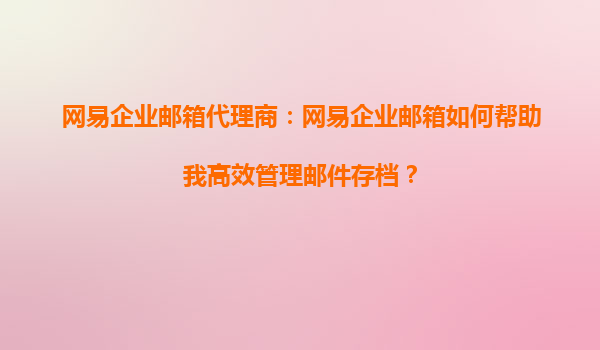 2025-09-19網(wǎng)易企業(yè)郵箱代理商:網(wǎng)易企業(yè)郵箱如何幫助我高效管理郵件存檔? 一、引言 在現(xiàn)代企業(yè)中,郵件溝通是日常工作的重要組成部分。隨著業(yè)務(wù)量的增加,郵件數(shù)量也呈指數(shù)級增長,如何高效管理郵...